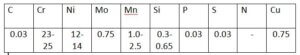 *only elements applicable for Cr eq & Ni eq are tabulated here.